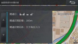 高速道の差分配信リストが表示され、「情報」をタッチすると、さらに詳しい高速道配信の情報を確認することができます。