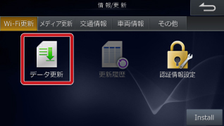 スイッチを押し、「Wi-Fi更新」→「データ更新」の順にタッチします。 「リスト更新」にタッチします。