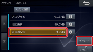 「高速道配信」→「ダウンロード」の順にタッチします。