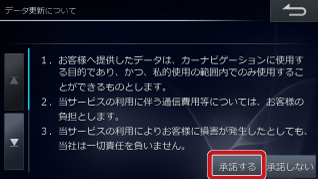※「承諾しない」にタッチした場合はデータ更新せずナビ画面へ戻ります。 -