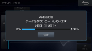 ※ナビが起動できなくなる恐れがありますので、データ更新中は絶対に電源を切ったり、SDカードまたはUSBメモリーを取り出したりしないでください。高速道配信が終了すると再起動を行い、オープニング画面が表示されます。