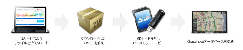 - Gracenoteデータベースダウンロードページから、Gracenoteデータベース更新ファイル(圧縮されています)をお客様のPCにダウンロードします。