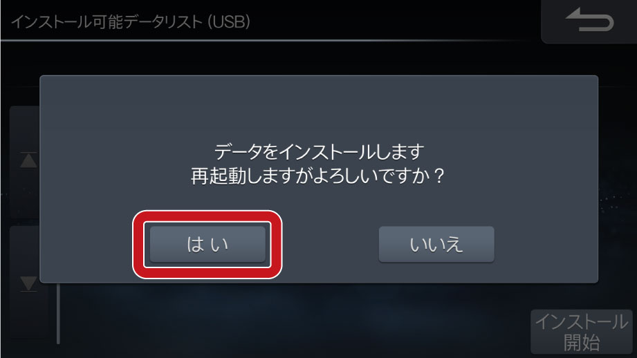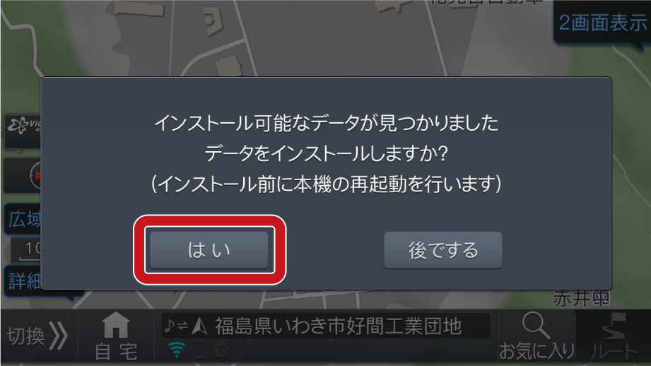 「インストール可能なデータが見つかりました データリストを表示しますか?」 というメッセージが出てくるので、「はい」 にタッチします。
