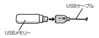 製品添付のUSBケーブルに、USBメモリーを接続します。
